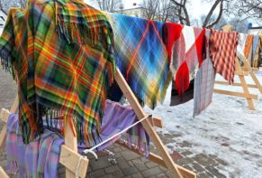 Valmieras Kultūras centrā dzied un dejo, bet pagalmā saldē deķus un lakatus