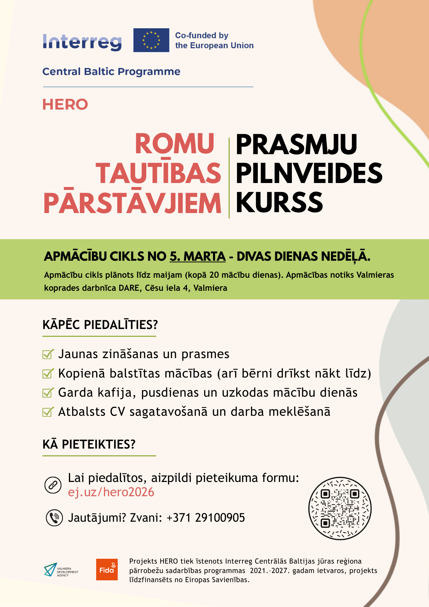 Interesentiem jāaizpilda pieteikuma forma tiešsaistē: ej.uz/hero2026. Papildu informācija pa tālruni: +371 29100905.