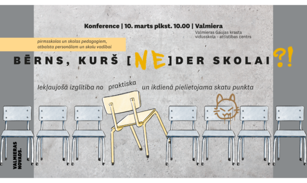 2026. gada 10. martā no plkst. 10.00 līdz 17.00 Valmierā, Valmieras Gaujas krasta vidusskolā – attīstības centrā (Pāvila Rozīša iela 5), notiks konference “Bērns, kurš [ne]der skolai?!” – no sistēmas līdz cilvēkam, kas veltīta iekļaujošās izglītības jautājumiem no praktiska un ikdienā pielietojama skatu punkta, portālu “Valmieras Ziņas” informēja Valmieras novada pašvaldības Zīmolvedības un sabiedrisko attiecību nodaļas komunikācijas un sabiedrisko attiecību speciālists Dzintars Močs.