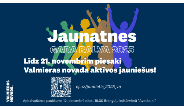 Līdz 2025. gada 21. novembrim aicinām pieteikt novada aktīvos jauniešus apbalvojumam “Valmieras novada Jaunatnes gada balva 2025”, lai novērtētu un pateiktos tiem, bez kuriem jauniešu dzīve novadā nebūtu tik piepildīta, portālu “Valmieras Ziņas” informēja Valmieras novada pašvaldības Zīmolvedības un sabiedrisko attiecību nodaļas komunikācijas un sabiedrisko attiecību speciāliste Liene Pinne.