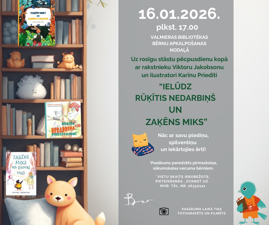 Kopā ar rakstnieku Viktoru Jakobsonu un ilustratori Karīnu Priedīti dosimies aizraujošā stāstu piedzīvojumā.