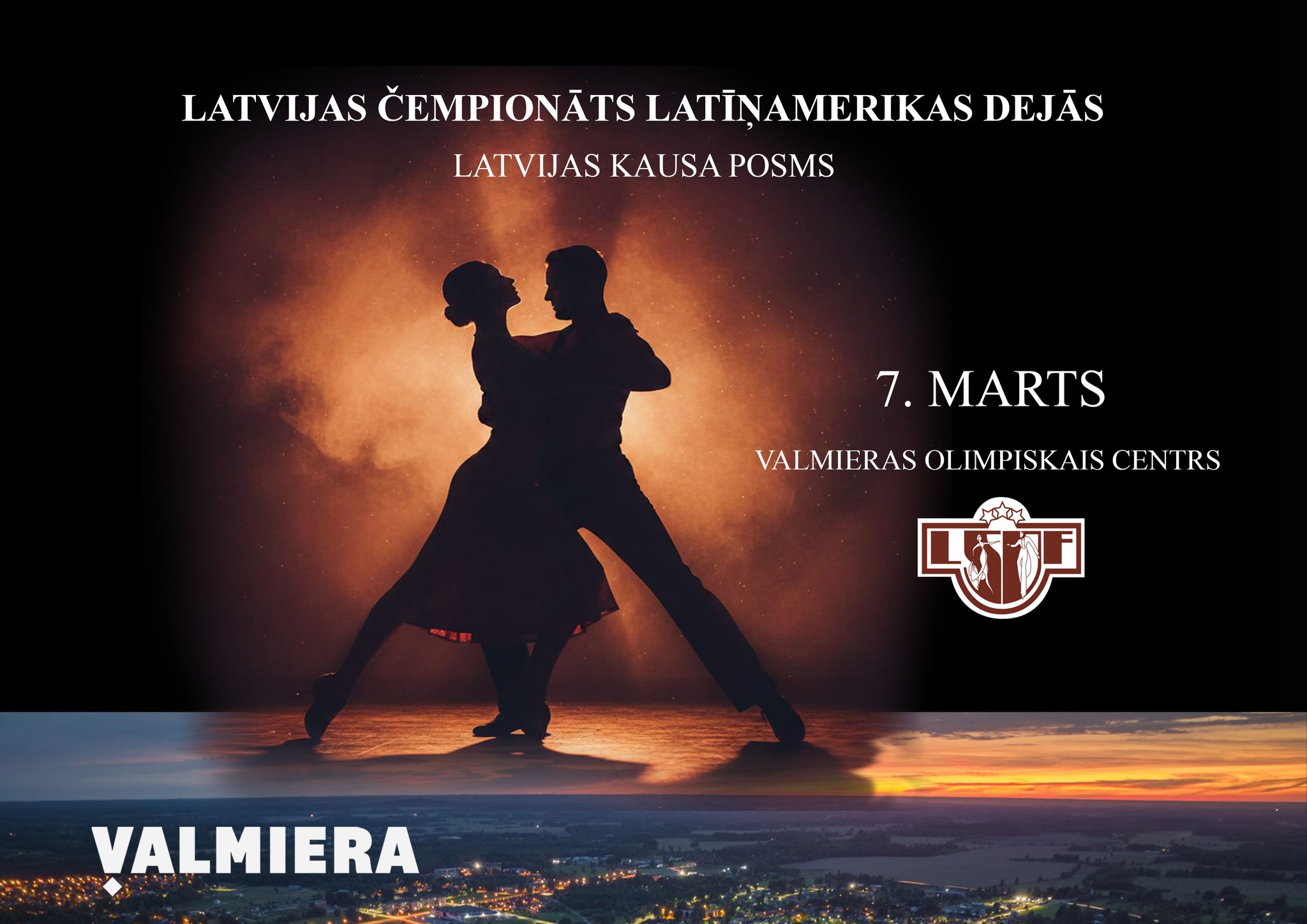 7.martā Valmieras Olimpiskajā centrā no plkst. 9.00 sporta deju cienītāji aicināti apmeklēt Latvijas čempionātu Latīņamerikas dejās un Latvijas meistarsacīkstes, lai klātienē redzētu Latvijas sporta deju pārus, kuri augstus rezultātus uzrādījuši arī starptautiskā arēnā.