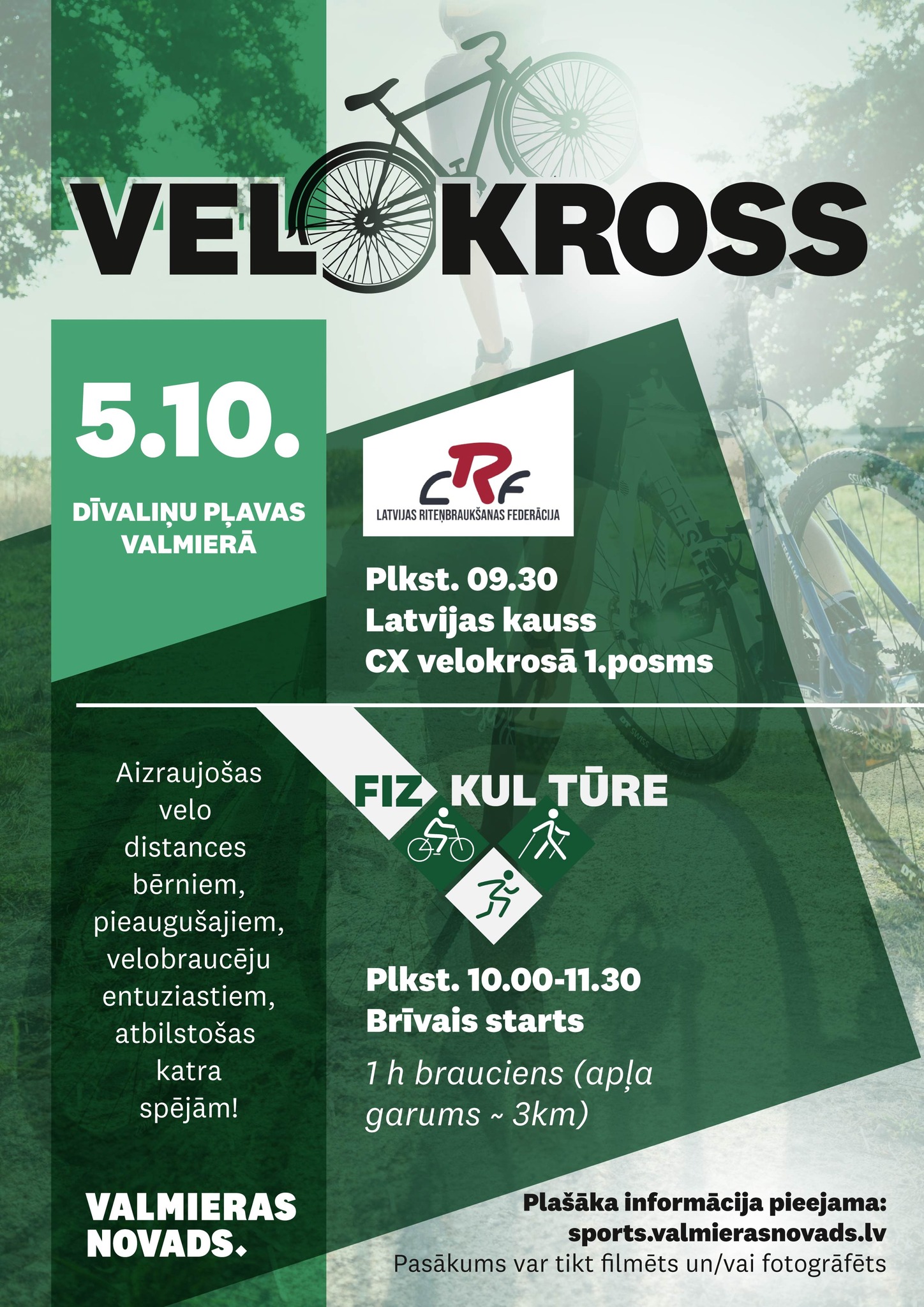 10:00–12:00 – “FizKulTūre” draudzīgais velokross (brīvais starts no 10:00 līdz 11:30)