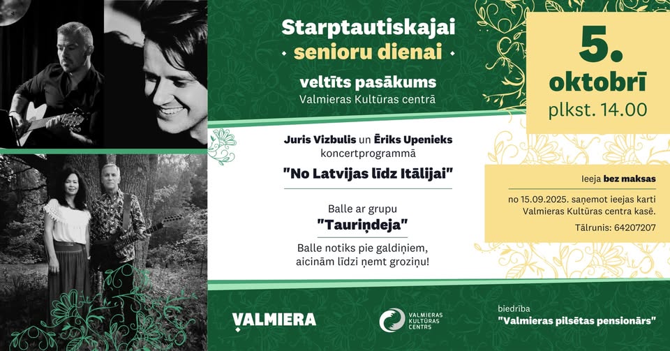 5.oktobrī plkst.14.00 Valmieras Kultūras centrā norisināsies Starptautiskajai senioru dienai veltīts pasākums.