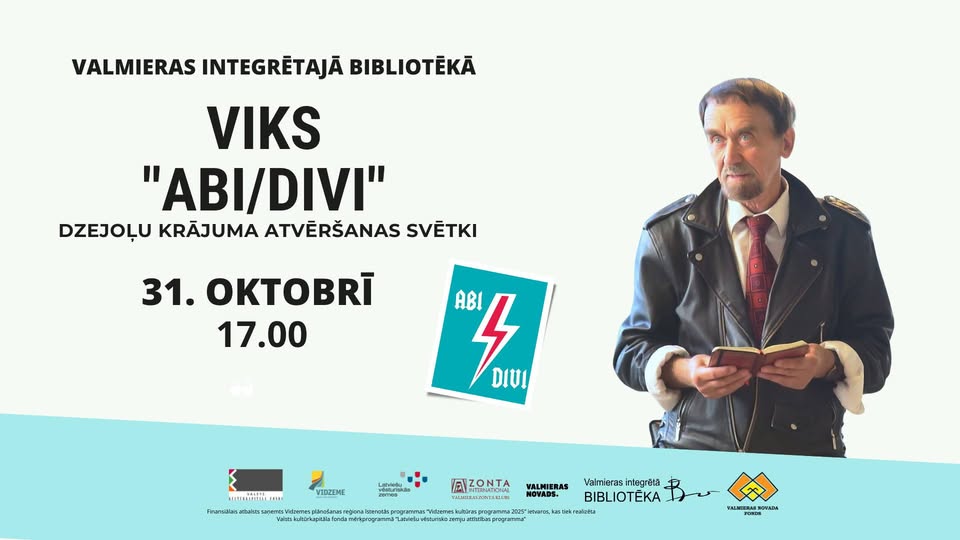 Piektdien, 31.oktobrī, plkst. 17.00 Valmieras Integrētajā bibliotēkā visi laipni aicināti uz dzejnieka Vika (Viktora Kalniņa) dzejoļu krājuma “ABI/DIVI” atvēršanas svētkiem. Pasākumā saruna ar dzejnieku un fragmenti no krājuma.
