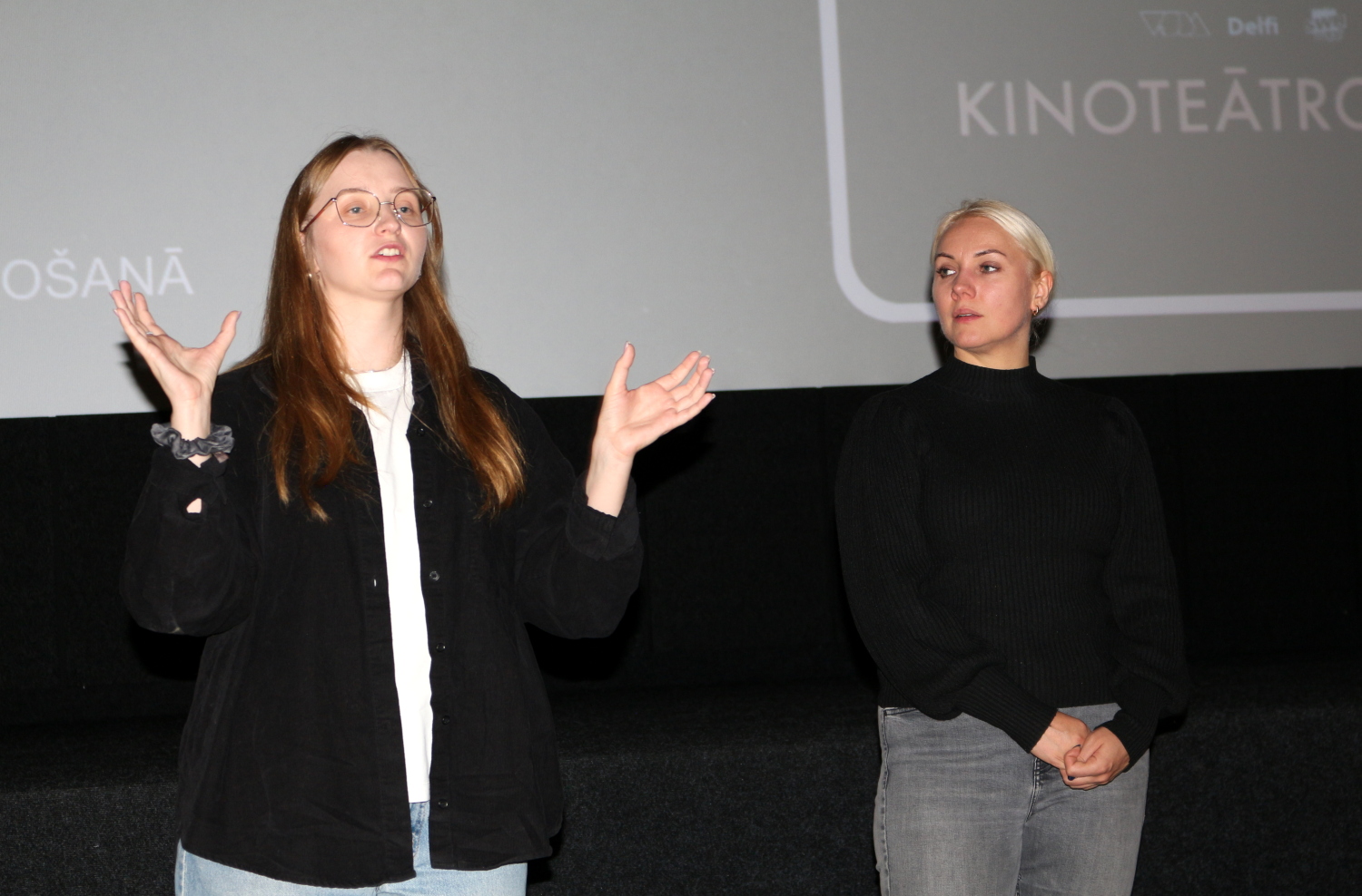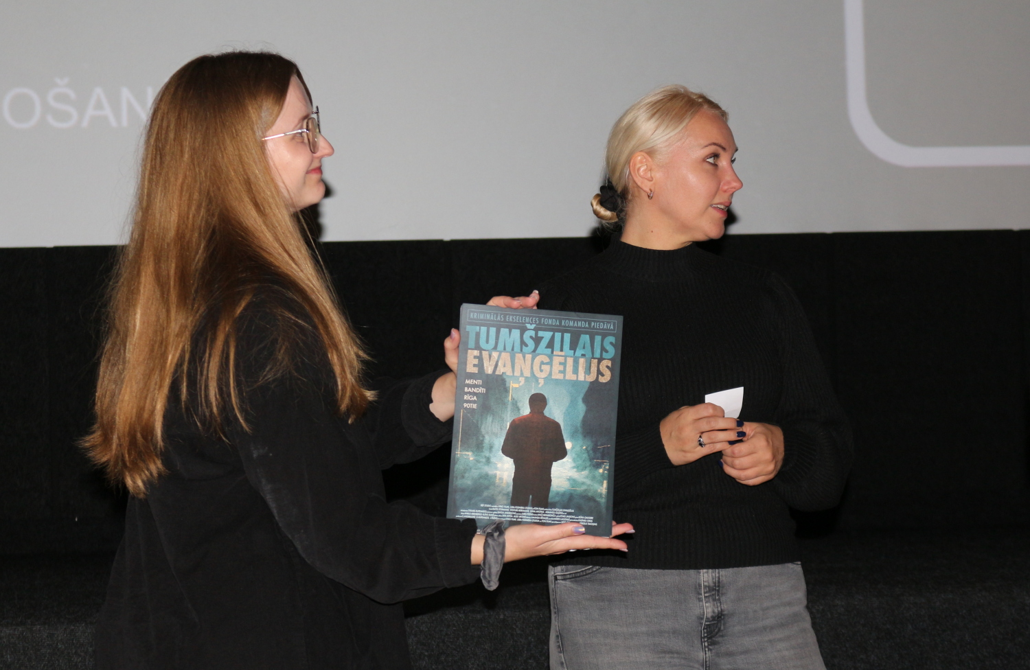 Piektdien, 10.oktobrī, kinoteātrī “Gaisma” kuplā skaitā bija ieradušies skatītāji, lai tiktos ar filmas “Tumšzilais evaņģēlijs” radošo komandu. Pie valmieriešiem bija ieradies pats režisors un scenārija autors Oskars Rupenheits, aktieru atlases koordinatore Alise Urtāne, lokāciju menedžere Amanda Rēvalde un producente, ražošanas vadītāja un vēl 200 citu darbu veicēja Sintija Andersone.