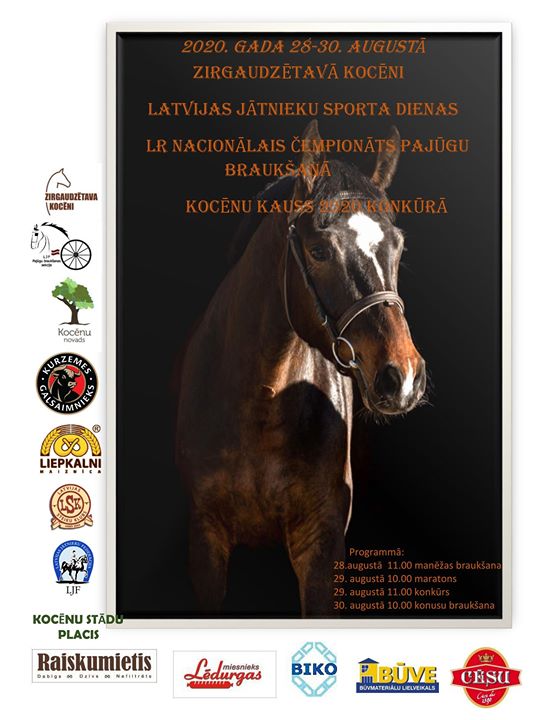 KOCĒNU KAUSS 2020 konkūrā . Latvijas jātnieku sporta dienas un LR Nacionālais čempionāts pajūgu braukšanā. Iepriekšējais attēls Nākamais attēls