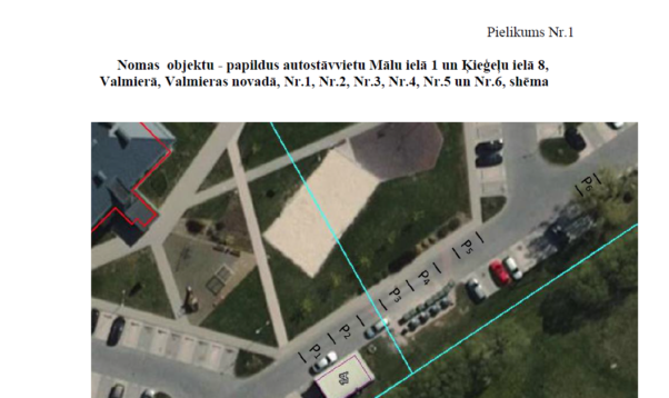 Paziņojums par nomas tiesību rezervācijas maksas izsolēm papildus autostāvvietām Mālu ielā 1 un Ķieģeļu ielā 8, Valmierā