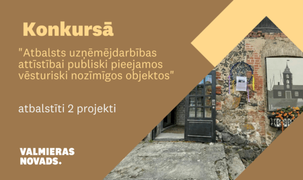 Lai sniegtu atbalstu uzņēmējdarbības attīstībai un sekmētu īpašumu ar kultūrvēsturisku un vēsturisku nozīmi saglabāšanu un izmantošanu, Valmieras novada pašvaldība ir izveidojusi īpašu finansiālā atbalsta programmu – “Atbalsts uzņēmējdarbības attīstībai publiski pieejamos vēsturiski nozīmīgos objektos”. Šogad otro reizi norisinājās Valmieras novada pašvaldības organizētais projektu konkurss, kura mērķis ir atbalstīt uzņēmējus, kuri ar savu darbību veicina vēsturiski nozīmīgu objektu ilgtspējīgu saglabāšanu, atjauno vai uztur vēsturisko vidi, portālu “Valmieras Ziņas” informēja Valmieras novada pašvaldības Zīmolvedības un sabiedrisko attiecību nodaļas komunikācijas un sabiedrisko attiecību speciāliste Ginta Gailīte.