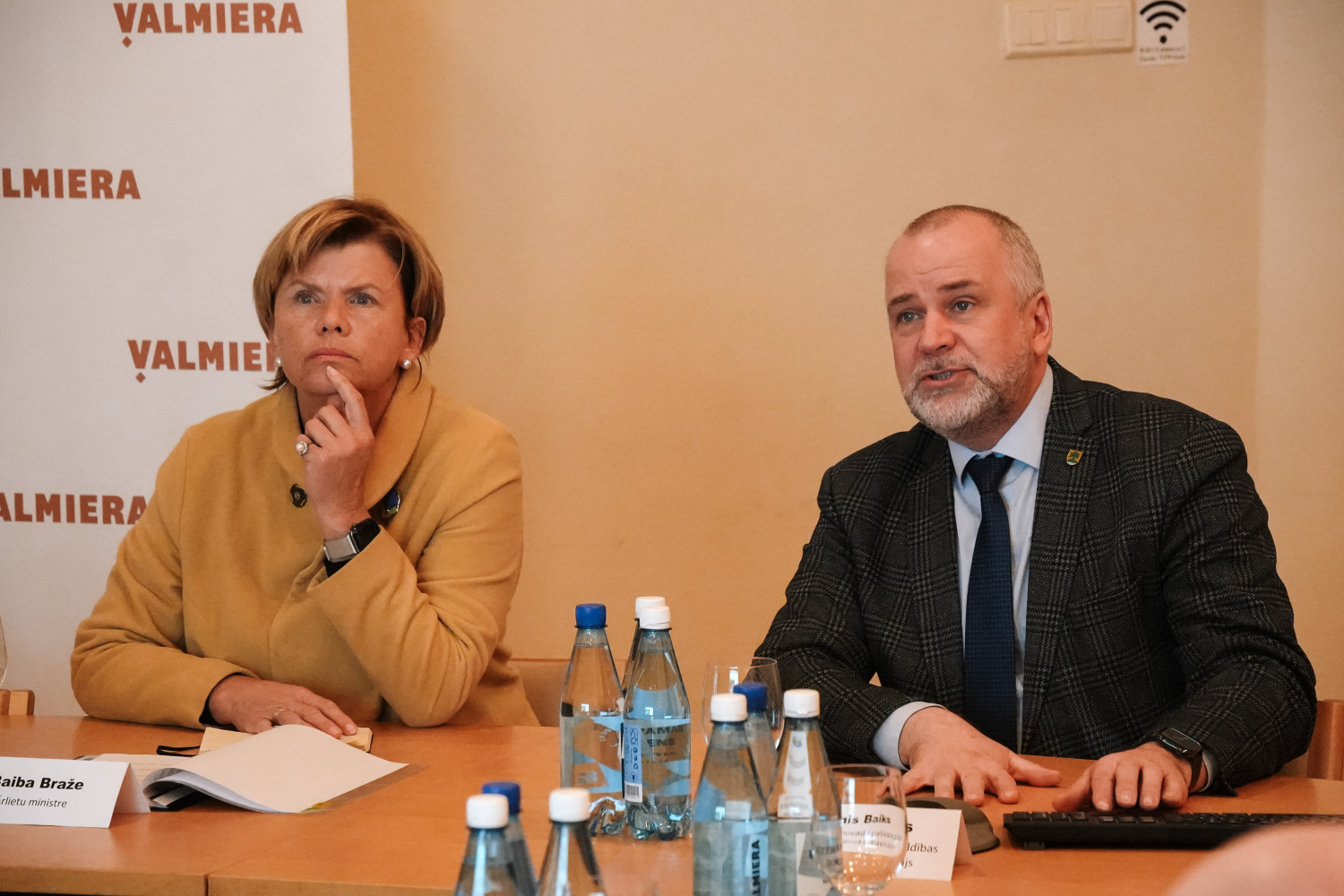 Valmieras novada pašvaldības Centrālajā pārvaldē ministre B. Braže tikās ar Valmieras novada pašvaldības domes priekšsēdētāju Jāni Baiku, domes priekšsēdētāja vietnieku civilās aizsardzības, drošības un sociālajos jautājumos Ričardu Gailumu, pašvaldības izpilddirektora vietnieci – Valmieras novada Attīstības pārvaldes vadītāju Eviju Nagli, pašvaldības izpilddirektora vietnieku – Valmieras novada Kapitāla pārvaldības un uzņēmējdarbības atbalsta nodaļas vadītāju Sandi Svarinski un domes priekšsēdētāja padomnieci un Valmieras pārstāvniecības Rīgā vadītāju Ilonu Kalniņu.