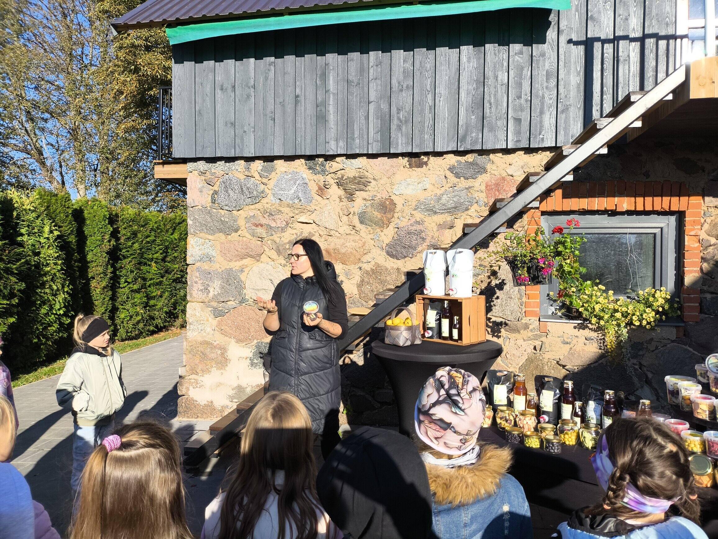 Bioloģiskajā ģimenes saimniecībā “Ozolzīles” skolēnus sagaidīja saimniece Anete Ozola, kura iepazīstināja ar liofilizācijas jeb žāvēšanas sasaldējot procesu. Bērni degustēja liofilizētos krispus, kas tapuši no dārzā plūktiem augļiem un vietēji audzētiem dārzeņiem, saglabājot to īsto garšu un uzturvērtību. Tāpat saimniece piedāvāja skolēniem nogaršot cidoniju un rabarberu dzērienus, kā arī izveda ekskursijā pa ražotni.