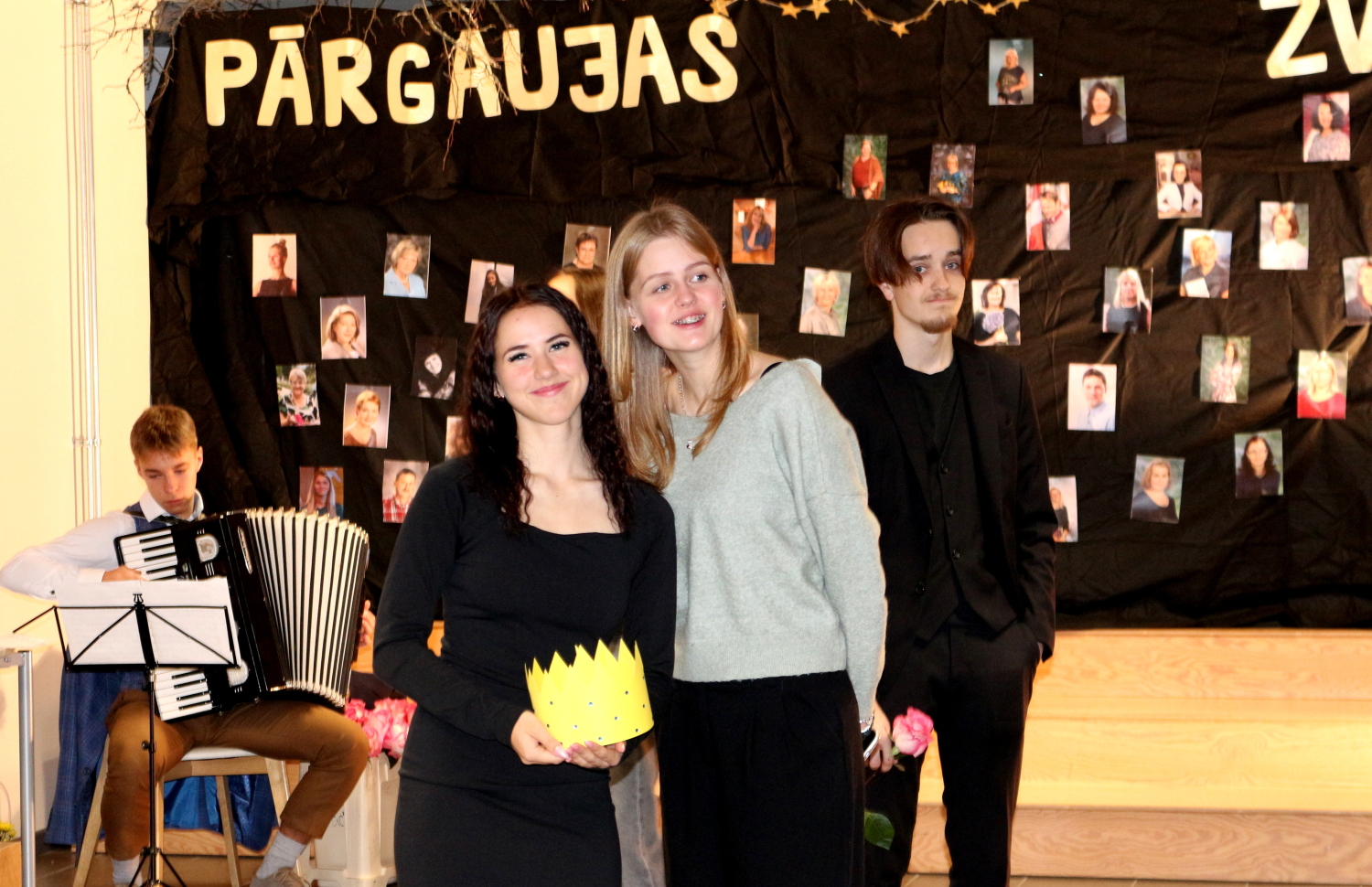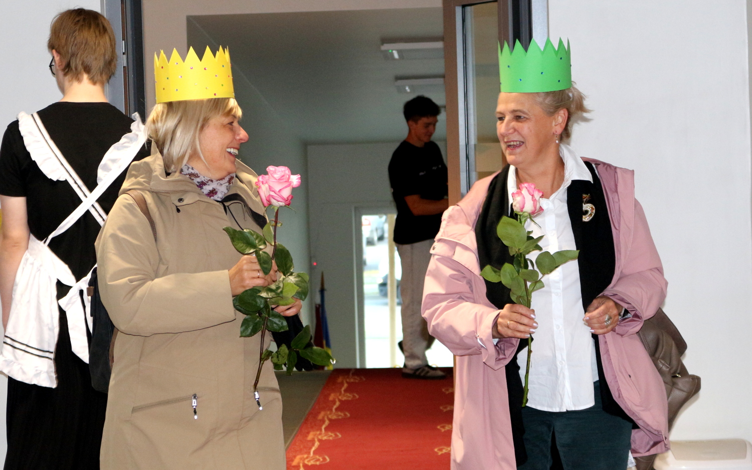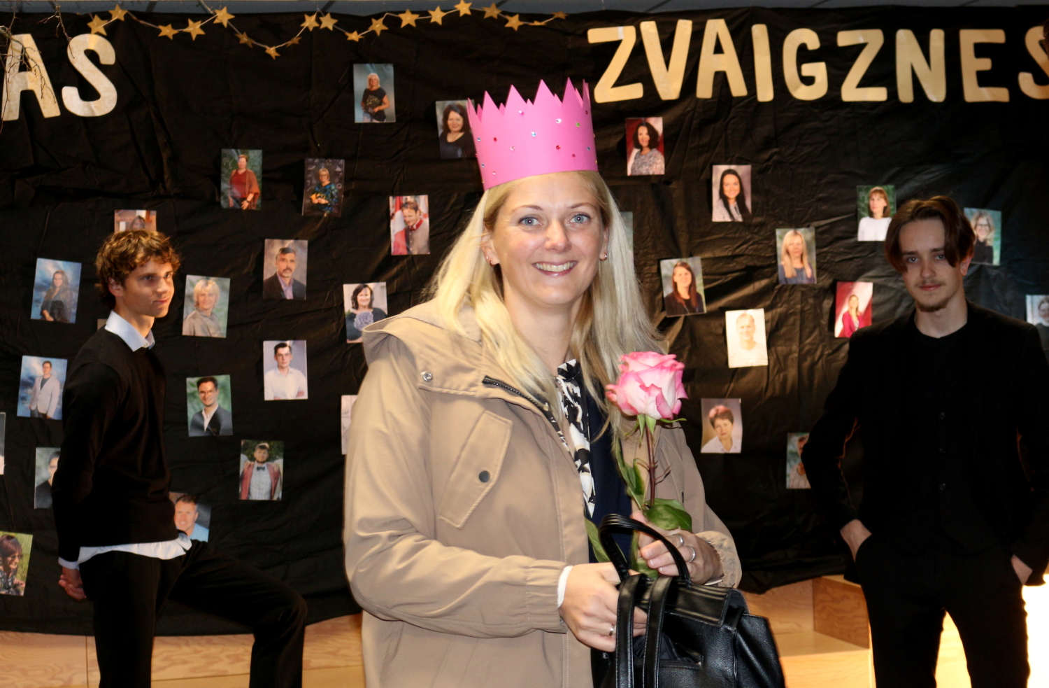 Durvis atvēra šveicars, tālāk pa sarkano paklāju ikviens skolotājs tika pavadīts līdz vestibilam, kur skanēja mūzika, katrs pedagogs saņēma kroni un krāšņu rozi…