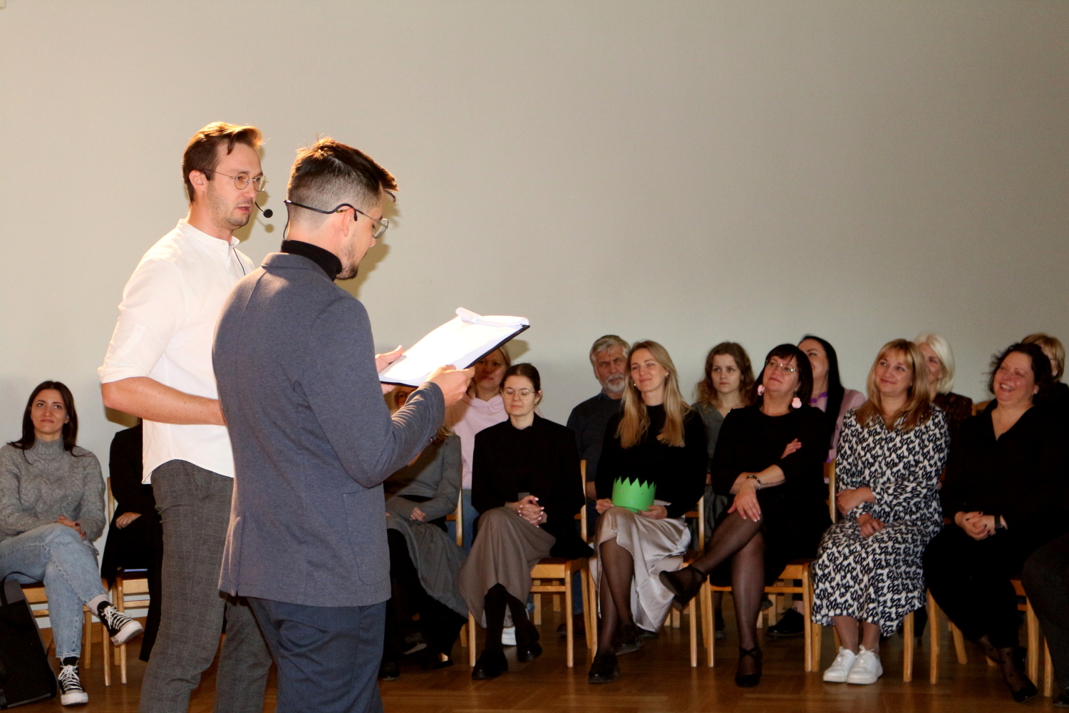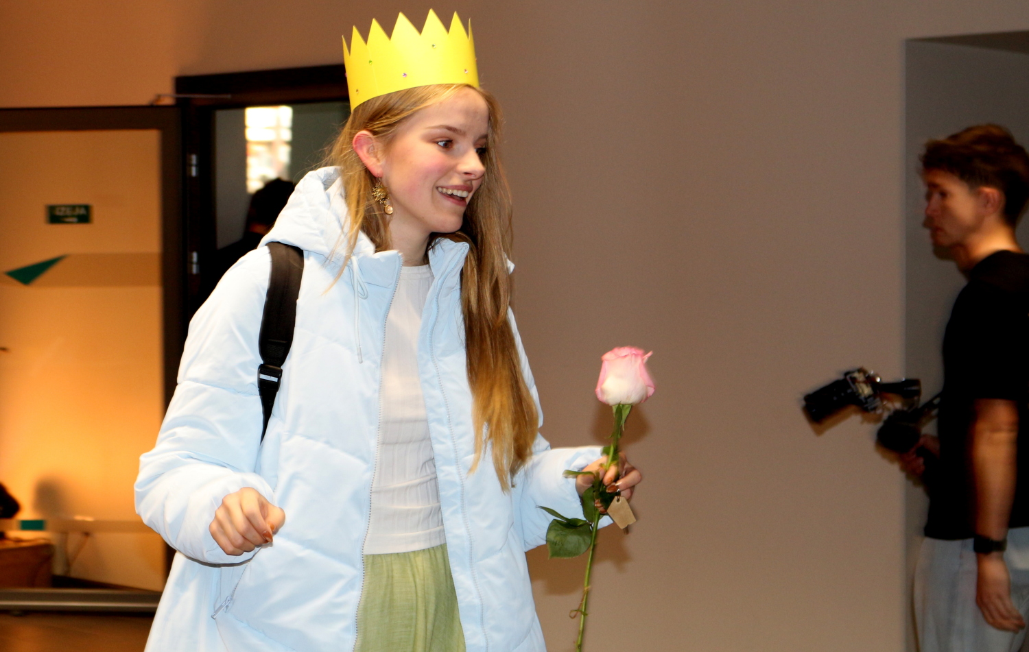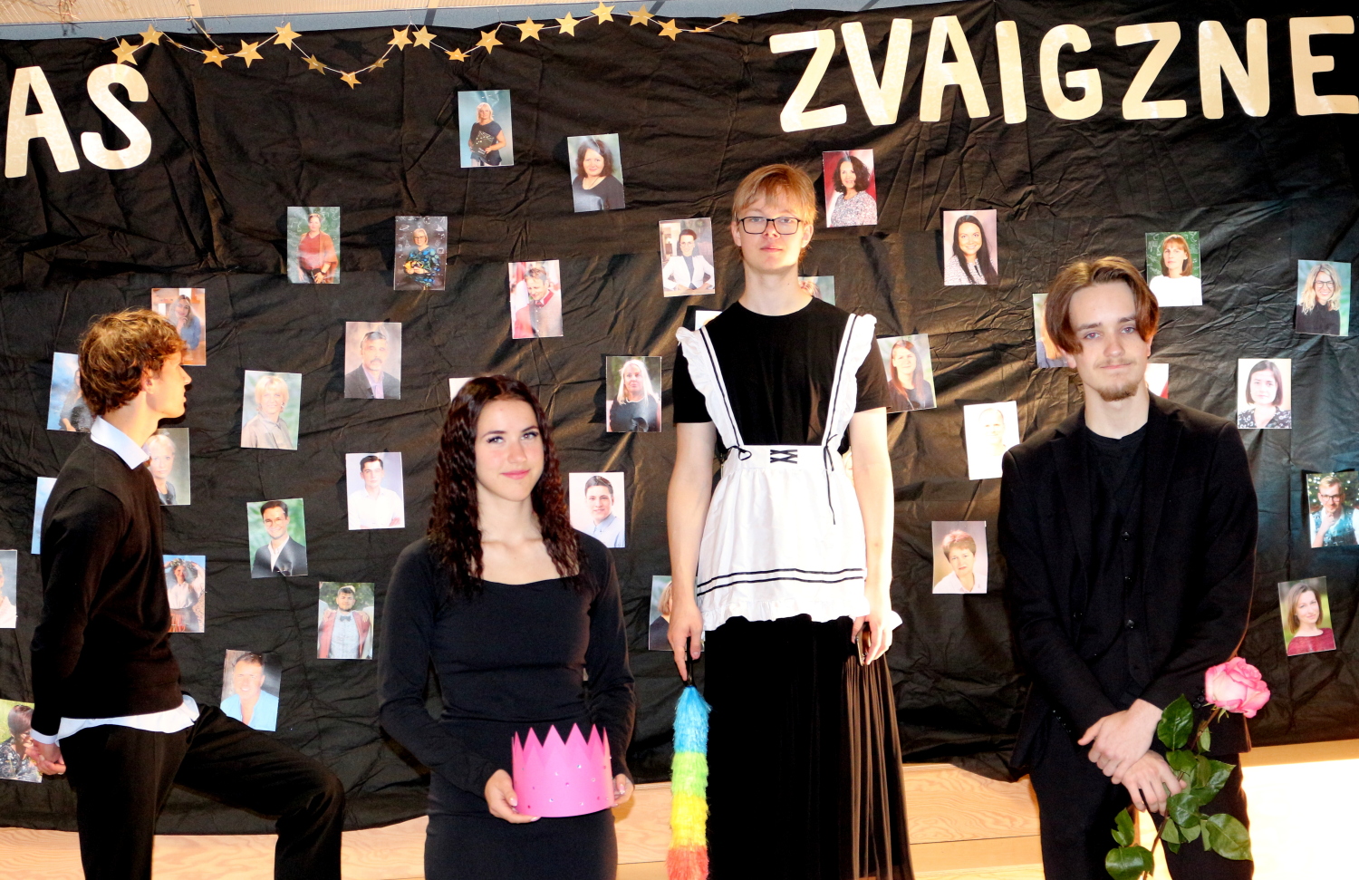 Durvis atvēra šveicars, tālāk pa sarkano paklāju ikviens skolotājs tika pavadīts līdz vestibilam, kur skanēja mūzika, katrs pedagogs saņēma kroni un krāšņu rozi…