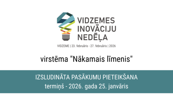 Vidzemes plānošanas reģions aicina uzņēmumus, publiskās pārvaldes iestādes, izglītības un pētniecības organizācijas, kā arī citus interesentus no 2026. gada 5. līdz 25. janvārim pieteikt savus pasākumus Vidzemes inovāciju nedēļas 2026 programmai. Vidzemes inovāciju nedēļa notiks no 2026. gada 23. līdz 27. februārim un jau astoto gadu pulcēs plašu inovāciju ekosistēmas dalībnieku loku no dažādām nozarēm. Šī gada virstēma – “Nākamais līmenis” – aicina pievērsties pārmaiņām, kas nepieciešamas turpmākai attīstībai gan uzņēmējdarbībā, gan publiskajā pārvaldē, portālu “Valmieras Ziņas” informēja Vidzemes plānošanas reģiona Komunikācijas un sabiedrisko attiecību nodaļas vadītāja Anita Āboliņa.