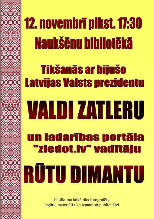Tikšanās ar Valdi Zatleru un Rūtu Dimantu Naukšēnu bibliotēkā