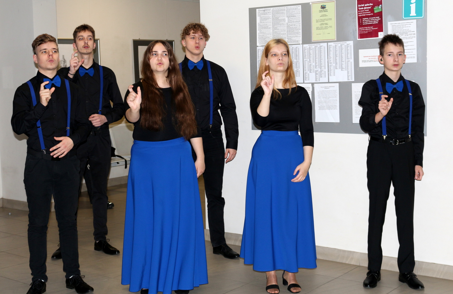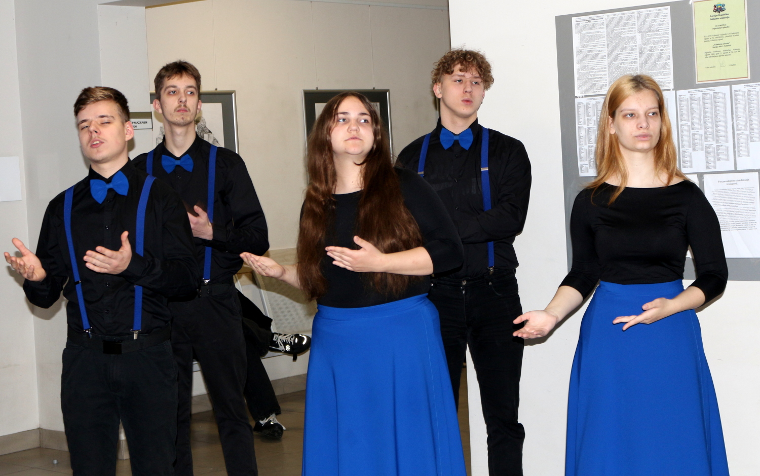 Koris izpildīja četrus skaņdarbus, ar mīmiku, zīmēm un ķermeņa valodu parādot dziesmu vārdus un domu. Šķiet, vissirsnīgāk un skatītājiem vissaprotamāk izskanēja klasiskā Ziemassvētku dziesma “Klusa nakts, svēta nakts”. Ikviens varēja izsekot līdzi koristu žestiem, kā gani slavē eņģeļus, kā silītē dus Jēzus…