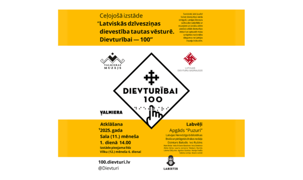 Valmieras muzeja Izstāžu namā Sala (11.) mēneša 1. dienā plkst. 14.00 tiks atklāta izstāde “Latviskās dzīvesziņas dievestība tautas vēsturē. Dievturībai – 100”, kas veltīta dievturības simtgadei. Paralēli izstādei notiks izglītojošas norises par dievturību un latvisko dzīvesziņu. Izstāde muzejā būs apskatāma līdz Vilku (12.) mēneša 6. dienai, portālu “Valmieras Ziņas” informēja Valmieras novada pašvaldības Zīmolvedības un sabiedrisko attiecību nodaļas vadītājas vietniece Zane Bulmeistare.