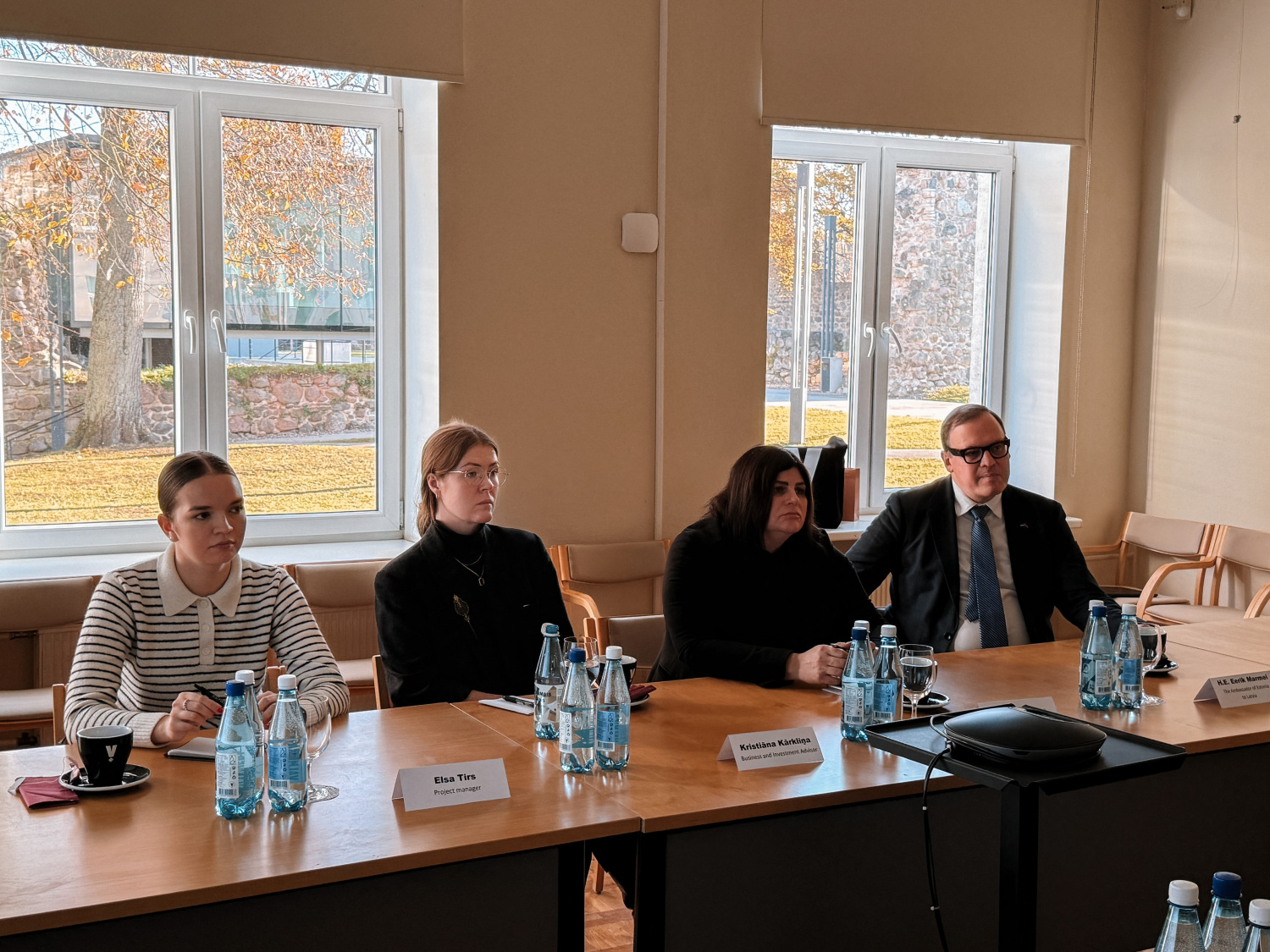 Sarunas turpinājumā pašvaldības domes priekšsēdētājs Jānis Baiks, piedaloties arī Valmieras novada pašvaldības Attīstības pārvaldes vadītājai Evijai Nagle un Kapitāla pārvaldības un uzņēmējdarbības atbalsta nodaļas vecākai uzņēmējdarbības atbalsta speciālistei Initai Niedzviedzei, tika pārrunāti ar uzņēmējdarbības attīstību saistīti jautājumi, piemēram, Igaunijas uzņēmuma “Fibenol” plānotās vairāk nekā 600 miljonu eiro investīcijas Valmieras Industriālajā parkā, un vēstnieks izrādīja interesi par uzņēmējdarbībai pieejamo infrastuktūru un nosacījumiem, kas būtu saistošie igauņu investoriem, kas vēlētos attīstīt savu biznesu Valmieras novadā. Vēstniekam un viņa komandai bija izdevība klātienē aplūkot Valmieras Industriālā parka būvniecības procesu, kas tuvojas noslēgumam.