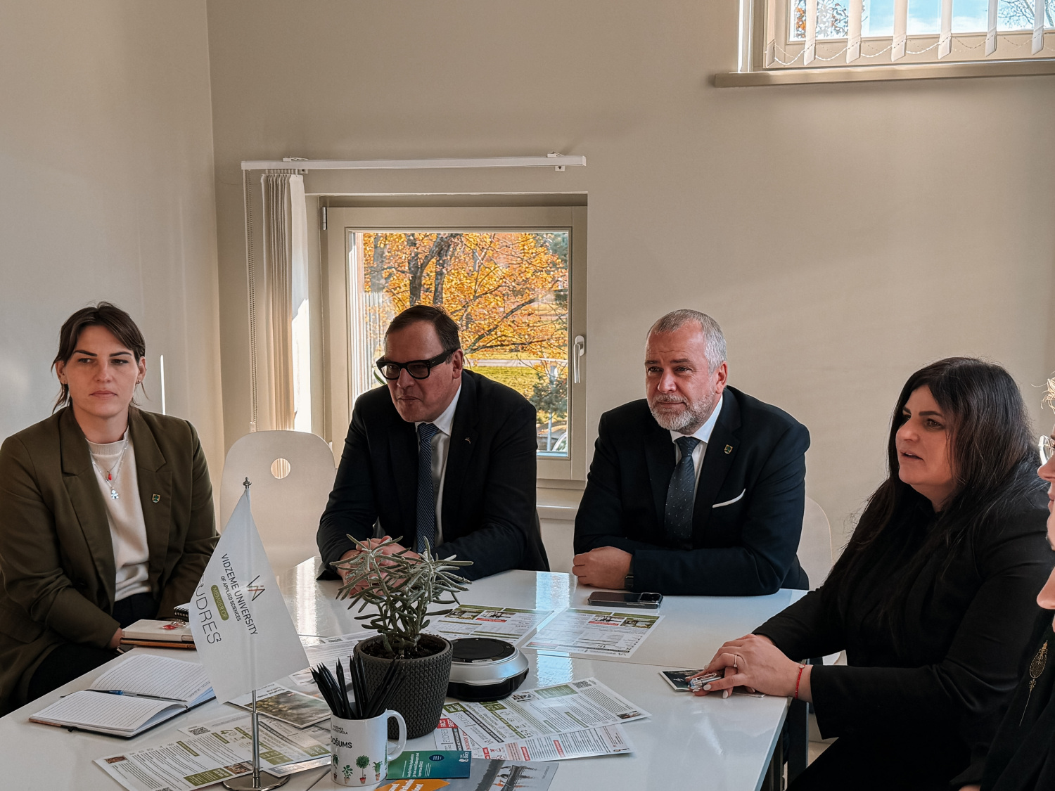 Vizītes turpinājumā Vidzemes Augstskolā norisinājās tikšanās ar tās rektori Agnesi Dāvidsoni, akadēmisko prorektori Ievu Zaumani un starptautisko studentu piesaistes speciālisti Beāti Velpi. Vidzemes Augstskolai ir izveidojusies cieša un veiksmīga sadarbība ar izglītības institūcijām Tartu un Pērnavā, un augstskola īsteno aktīvu starptautisko sadarbību Eiropas universitāšu tīklā E³UDRES². Vidzemes Augstskola strādā pie jaunu un aktuālu studiju programmu izstrādes un labprāt savā studentu pulkā redzētu vēl vairāk igauņu jauniešus.