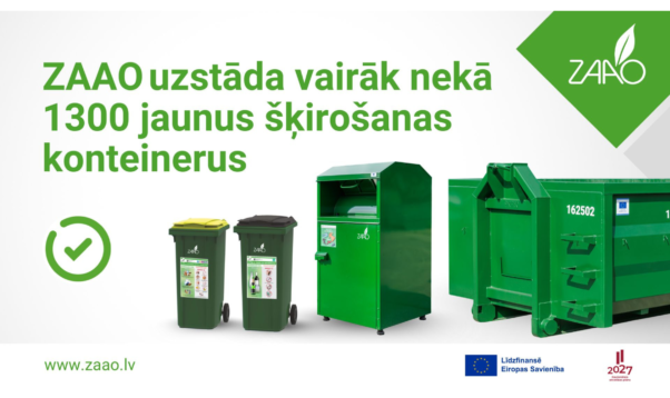 SIA “ZAAO” (ZAAO) turpina paplašināt šķiroto atkritumu savākšanas iespējas Vidzemē, īstenojot projektu “Dažādu veidu atkritumu dalītās vākšanas jaunu konteineru iegāde un piegāde ZAAO atkritumu dalītās savākšanas sistēmas paplašināšanai”. Projekta īstenošanas gaitā 2025. gadā uzstādīti 1356 jauni konteineri dažādu atkritumu veidu šķirošanai, portālu “Valmieras Ziņas” informēja SIA “ZAAO” Sabiedrisko attiecību speciāliste Rasa Ņikitina.