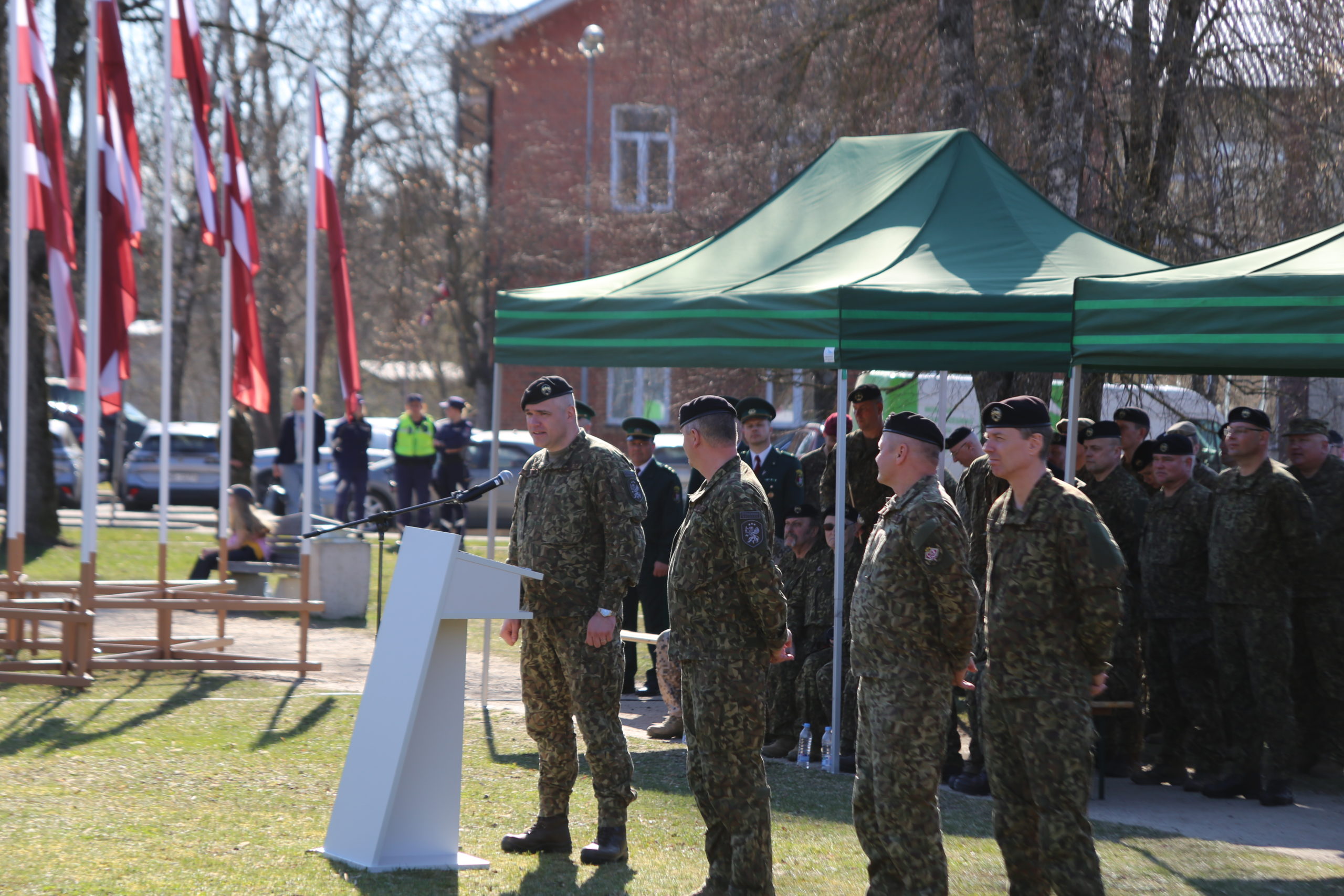 Līdzšinējais brigādes komandieris pulkvedis Kaspars Miezītis pateicas saviem karavīriem, zemessargiem un sabiedrībai par ciešo sadarbību, sakot, ka šī ir diena, kas vienmēr paliks atmiņā ar siltumu un pateicību sirdī: