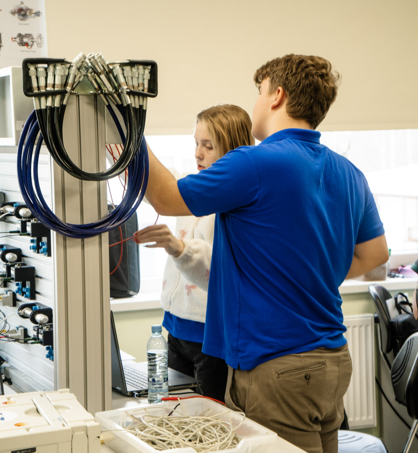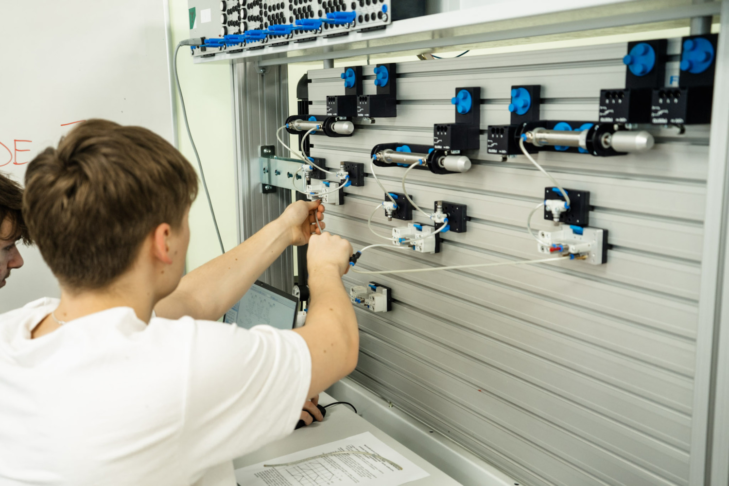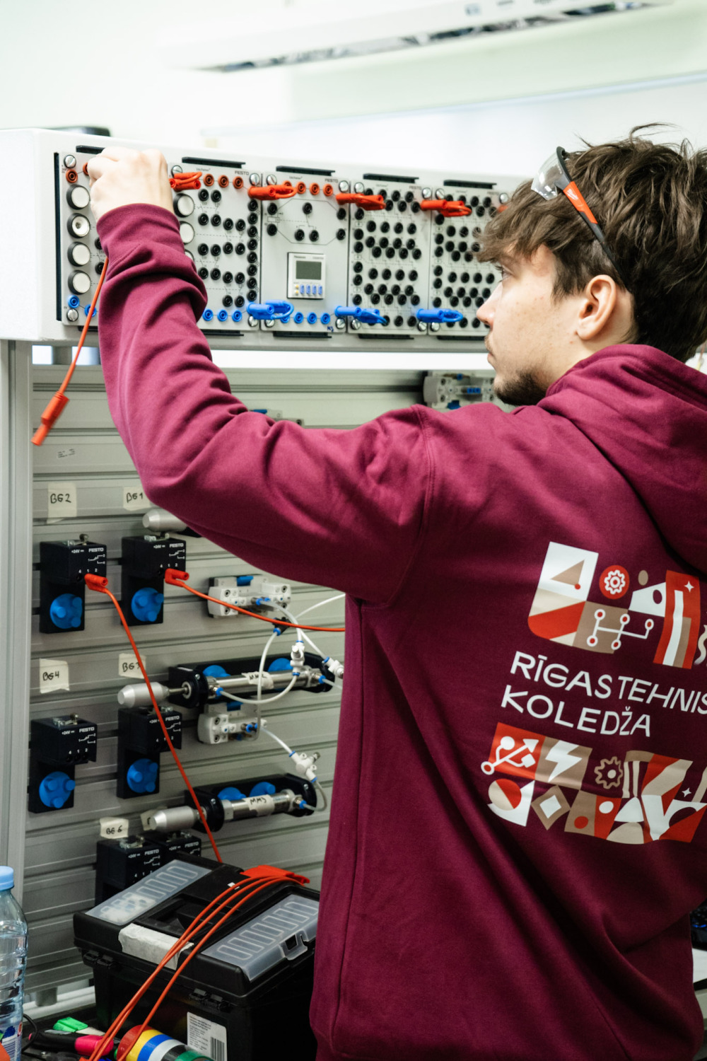 Prasmju konkursa “Mehatronika” pusfināls norisinājās divās daļās, kur pirmajā daļā konkursanti montēja elektropneimatisko sistēmu pēc dotajiem raksturojumiem, kuras darbība balstīta uz releju funkcijām simulācijas vidē. Savukārt otrajā daļā konkursantiem bija nepieciešams izveidot PLK programmu, par pamatu ņemot elektropneimatiskos vārstus, imitējot autostāvvietu barjeru funkcijas ar noteiktu autostāvvietu skaitu un, uzdevumu izpildot, bija jānodemonstrē un jāpaskaidro sistēmas pilna darbība gan standarta, gan arī avārijas režīmā. Kopumā konkursantiem darba uzdevuma izpildei tika dotas 5,5 stundas, no kurām 2 stundas atvēlētas pirmajai daļai un 3,5 stundas – uzdevuma otrajai daļai. Konkursantu paveikto vērtēja viņus pavadošie pedagogi eksperta Ritvara Rēvalda (Rīgas Tehniskā universitāte) vadībā. Valmieras tehnikumu pārstāvēja Rimands Deduškevičs un Deivids Celms.